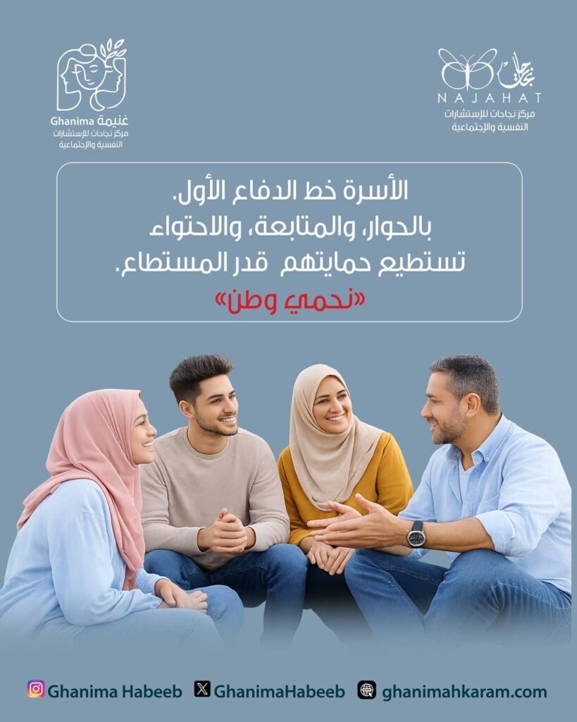 الأسرة خط الدفاع الأول غنيمة حبيب كرم ديسمبر ۱۹, ۲۰۲۵ 0 Comments اجتماعية / انسانية / انشطة 0 Post Views: 27 Share: