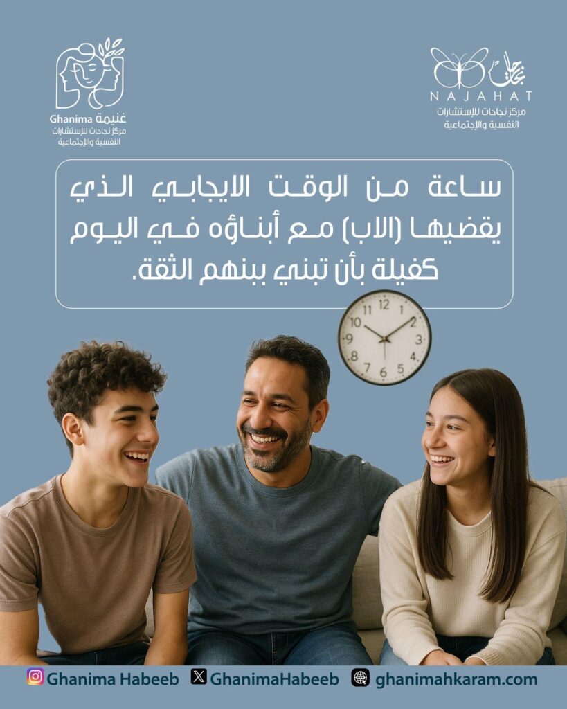 ساعة من الوقت الإيجابي الذي يقضيها الأب مع ابناؤه في اليوم.. كفيلة بأن تبني بينهم الثقة
