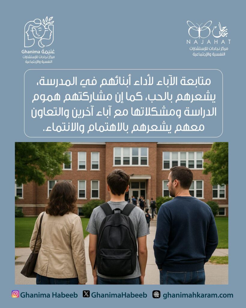 متابعة الآباء لأداء أبنائهم في المدرسة يشعرهم بالحب.. غنيمة حبيب كرم نوفمبر ۳۰, ۲۰۲۵ 0 Comments انسانية / تربوية 0 Post Views: 7 Share: